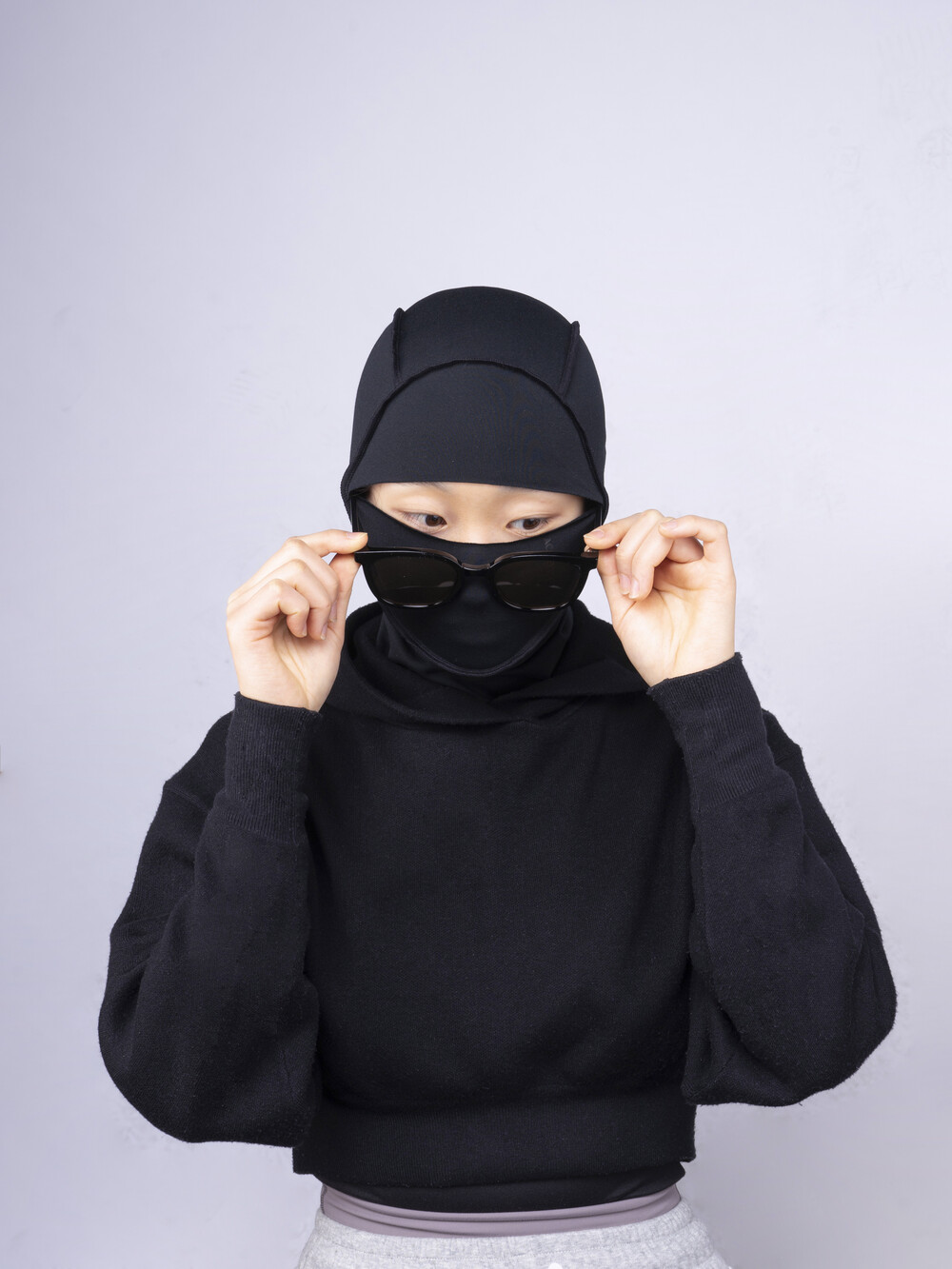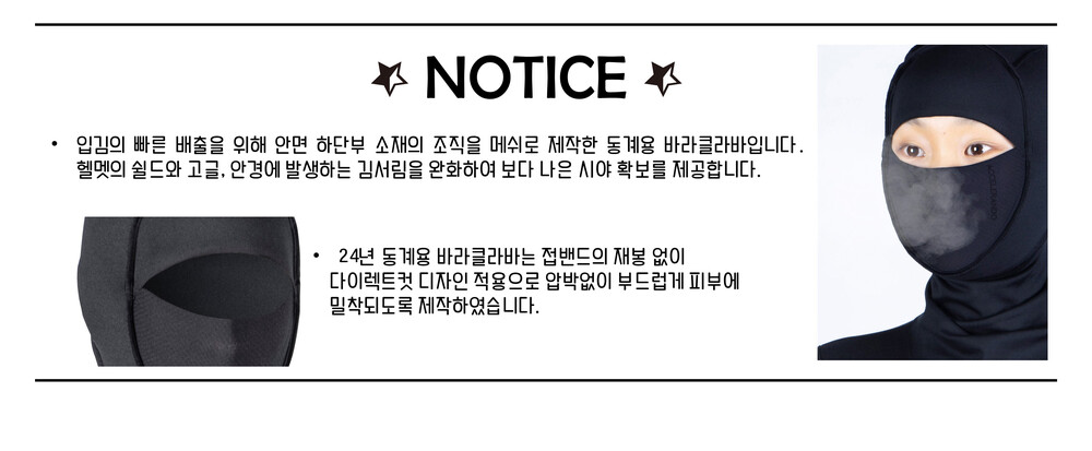 - 안면 개방부와 목을 감싸는 밑단은 별도의 마감이 없는 다이렉트컷 디자인 적용으로 압박없이 부드럽게 피부에 밀착됩니다.