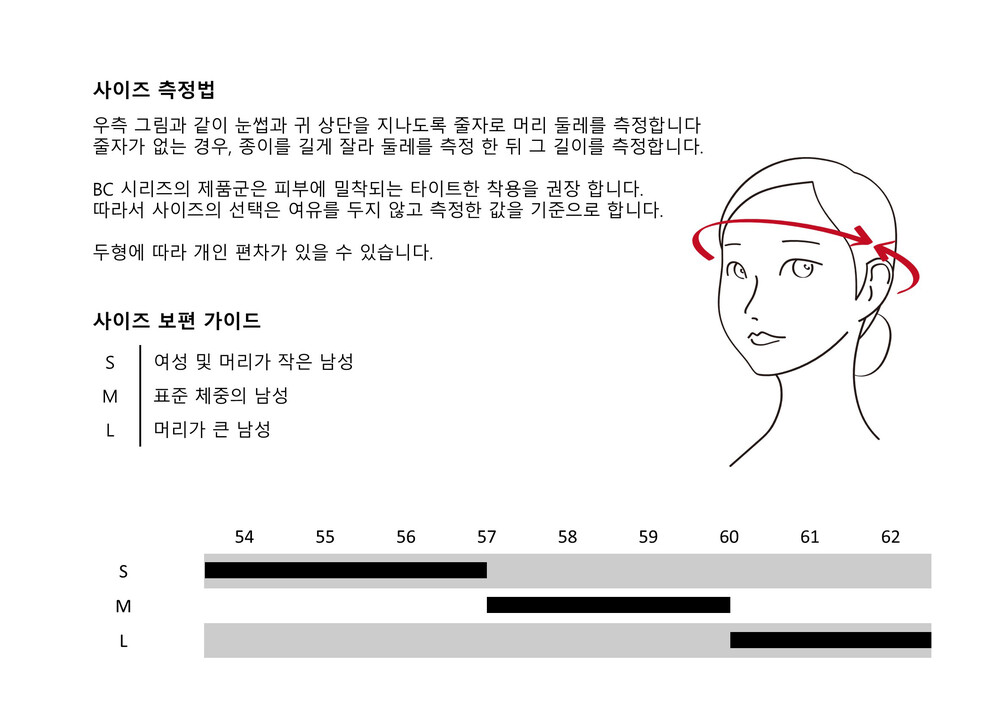 - 다양한 사이즈와 얇고 수축 이완력이 좋은 원단은 사용자의 두상을 적절히 감싸 헬멧 착용시 내부의 뒤틀림을 줄여 높은 편의성을 제공합니다.