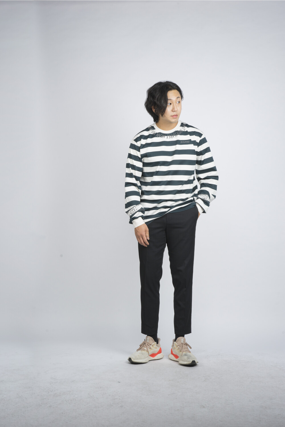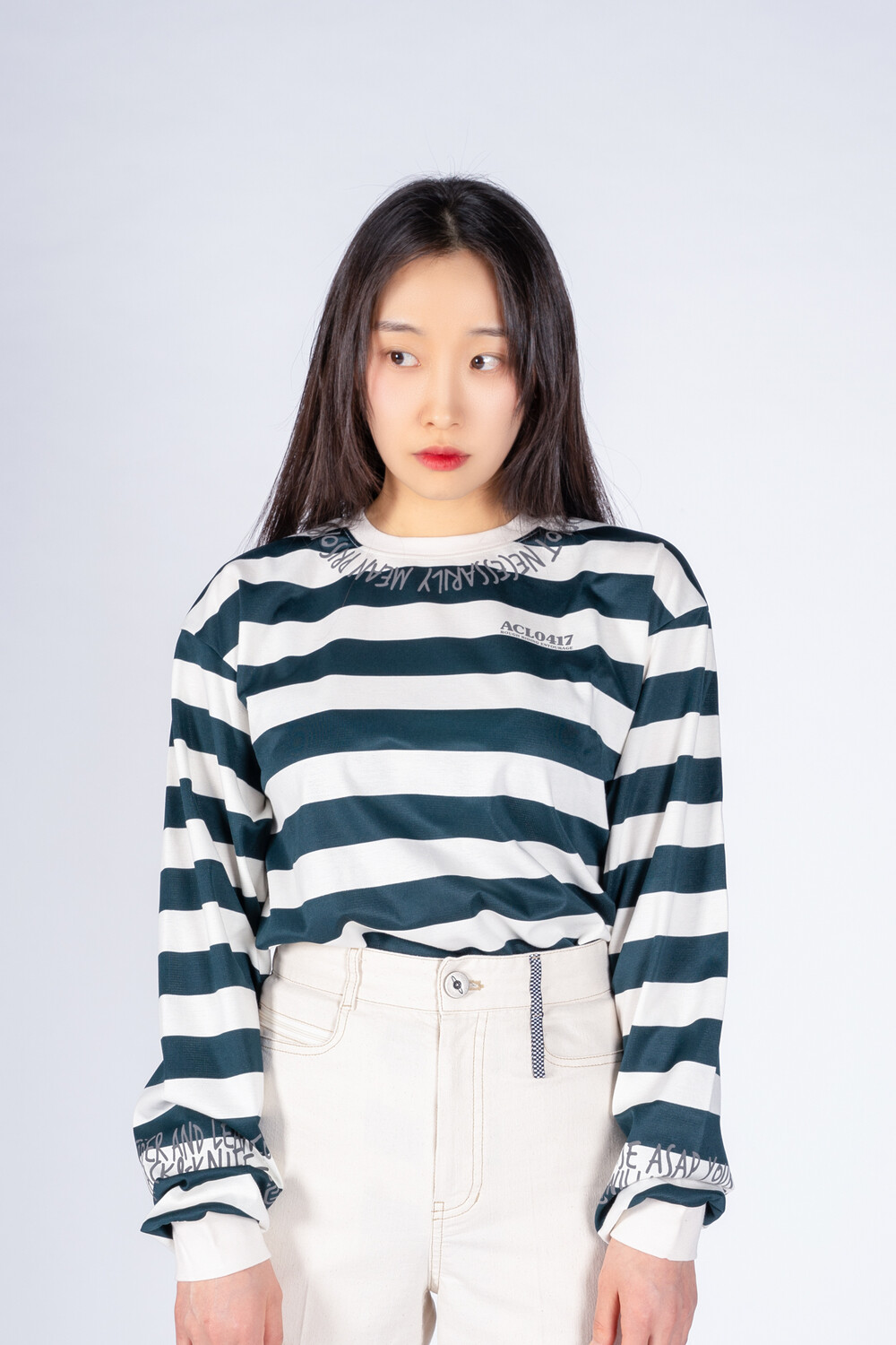 (BT03DG) PRISONER STRIPE long sleeve dark green