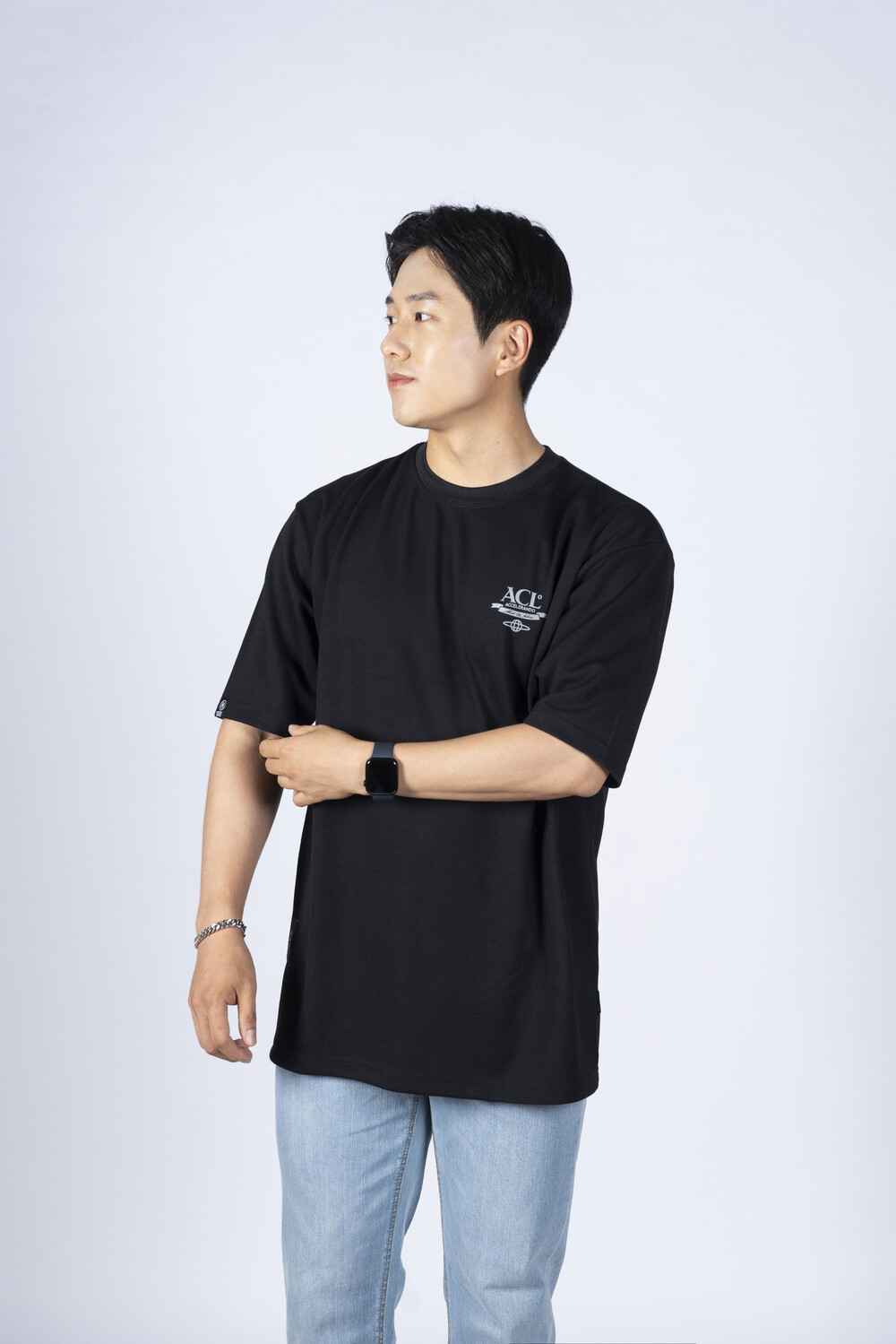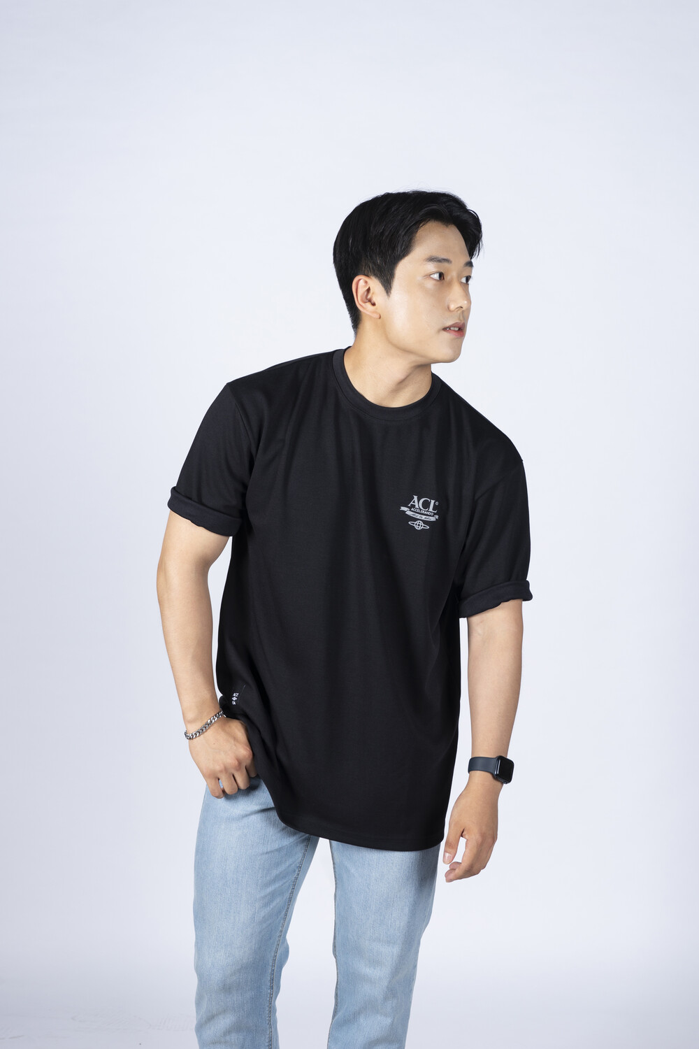 도톰하고 중량감이 있는 티셔츠로 착용자의 신체의 굴곡을 보완해줍니다.