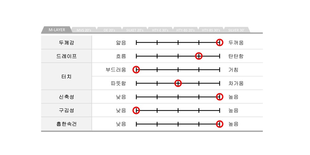 기능성의류를 위해 생산된 폴리에스테르 + 폴리우레탄 크루넥 카라는 오랜시간이 지나도 쉽게 변형되지 않습니다.