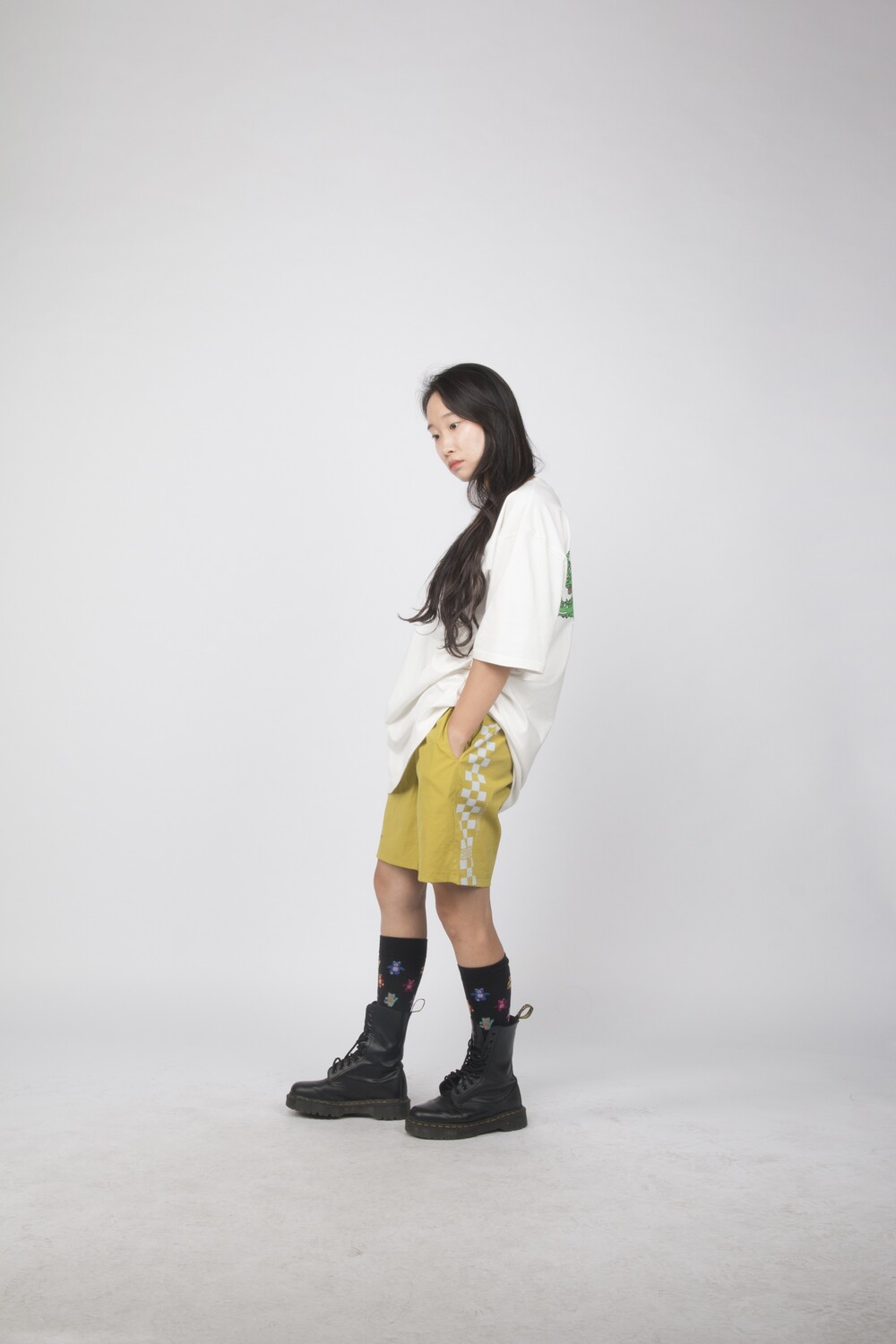 (CB01LY) CHECKERD LIGHT shorts lime yellow