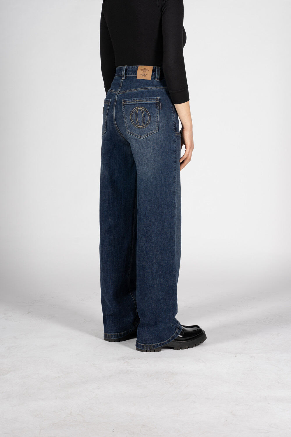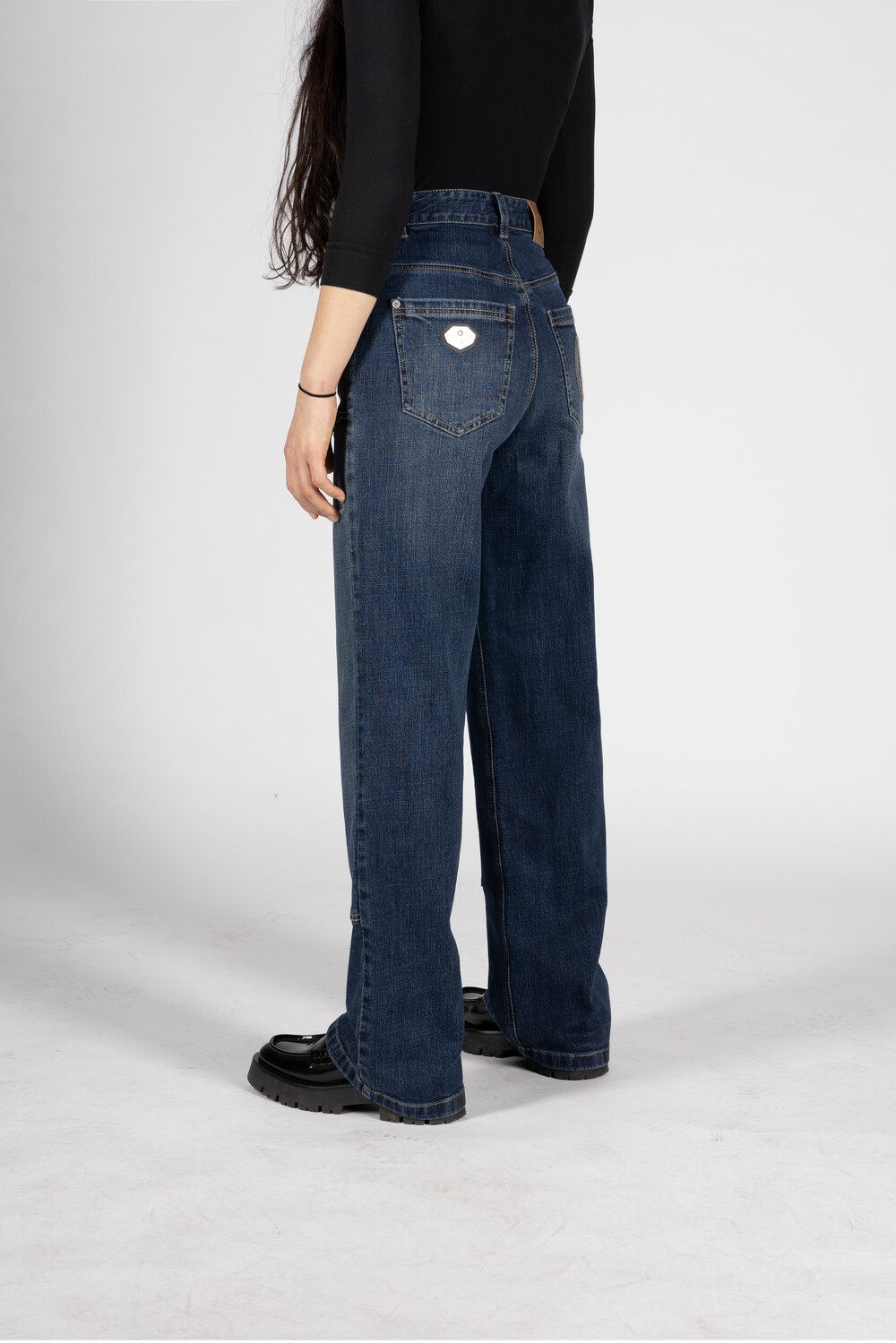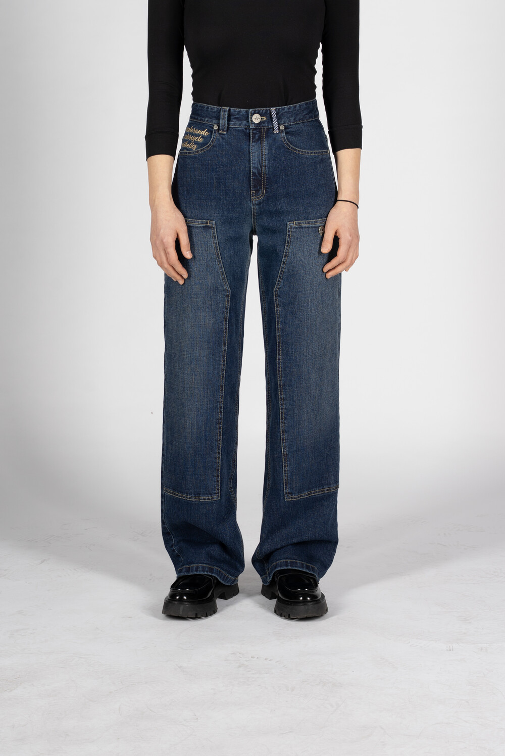 (CB13DBW) DOUBLE KNEE wide jean dark blue women