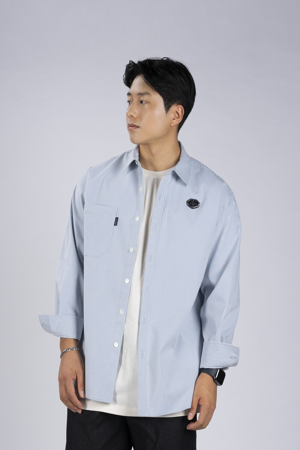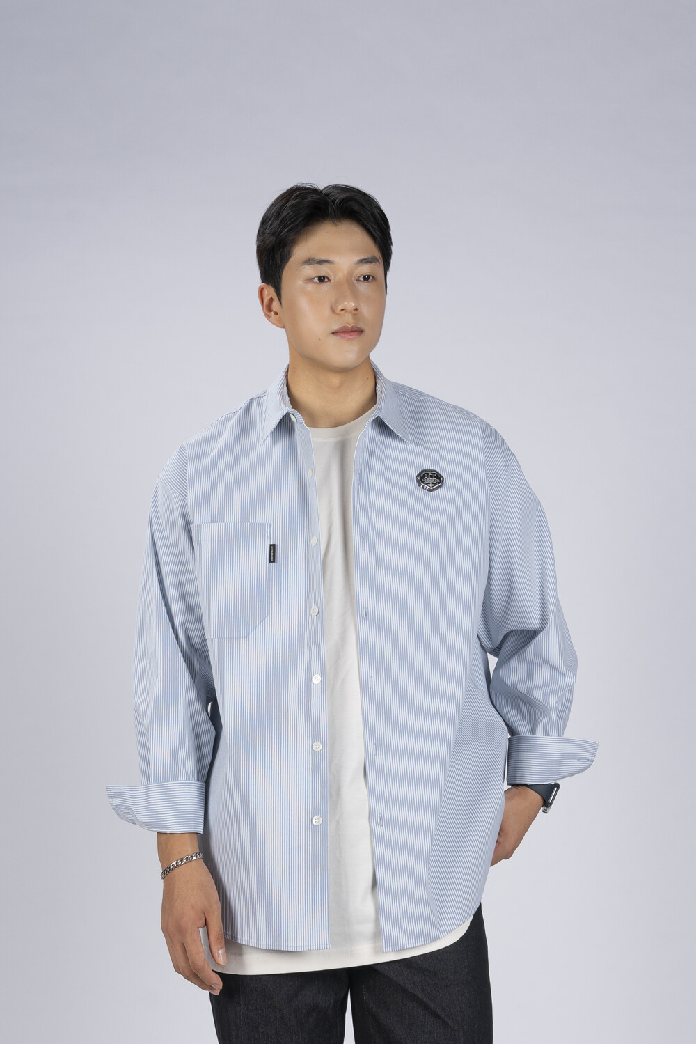 (DS01STP-BU) ACL EMBLEM shirket stripe sky blue