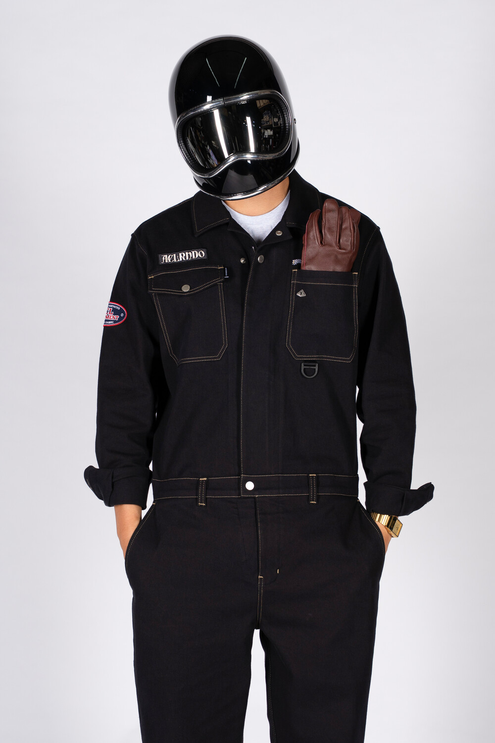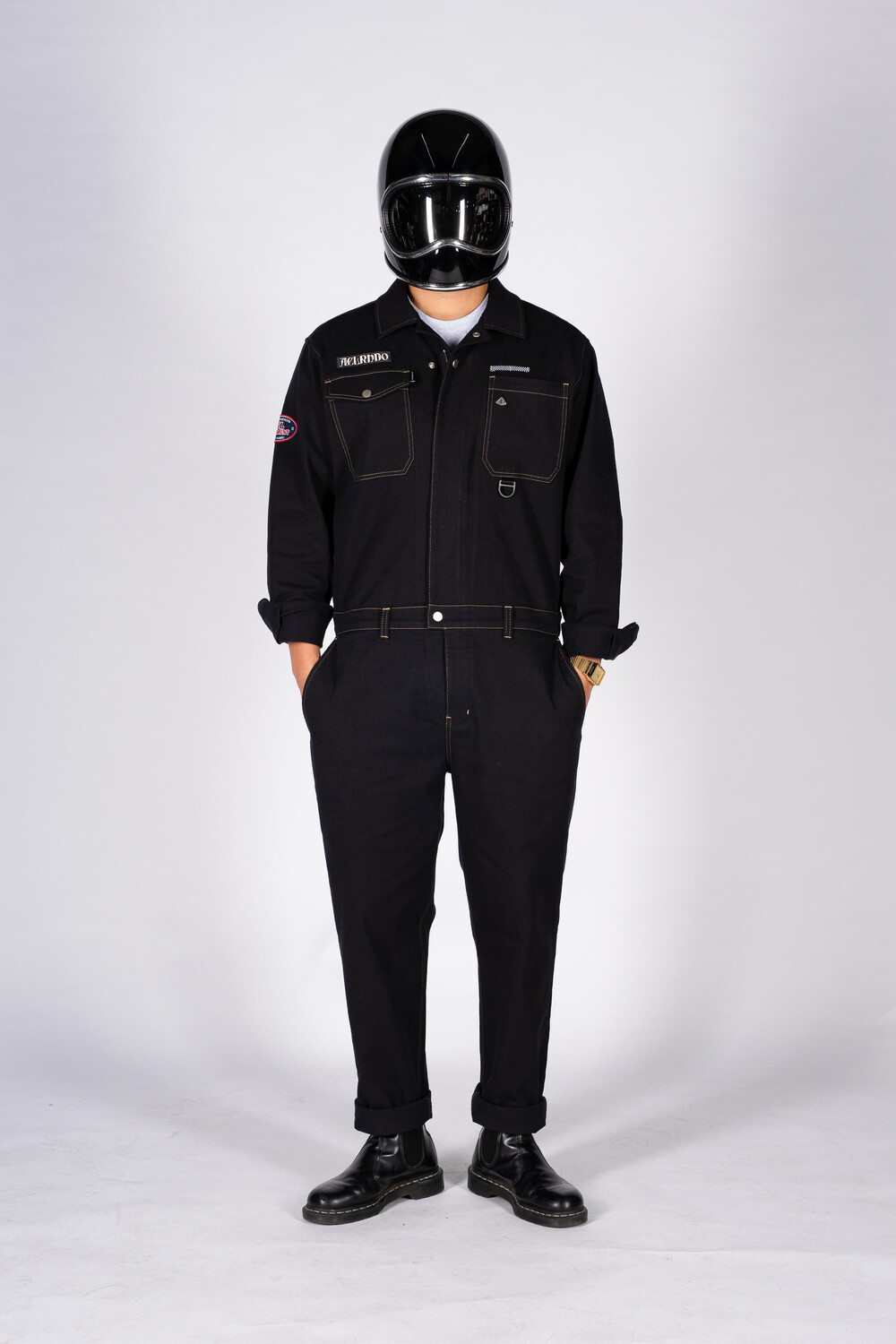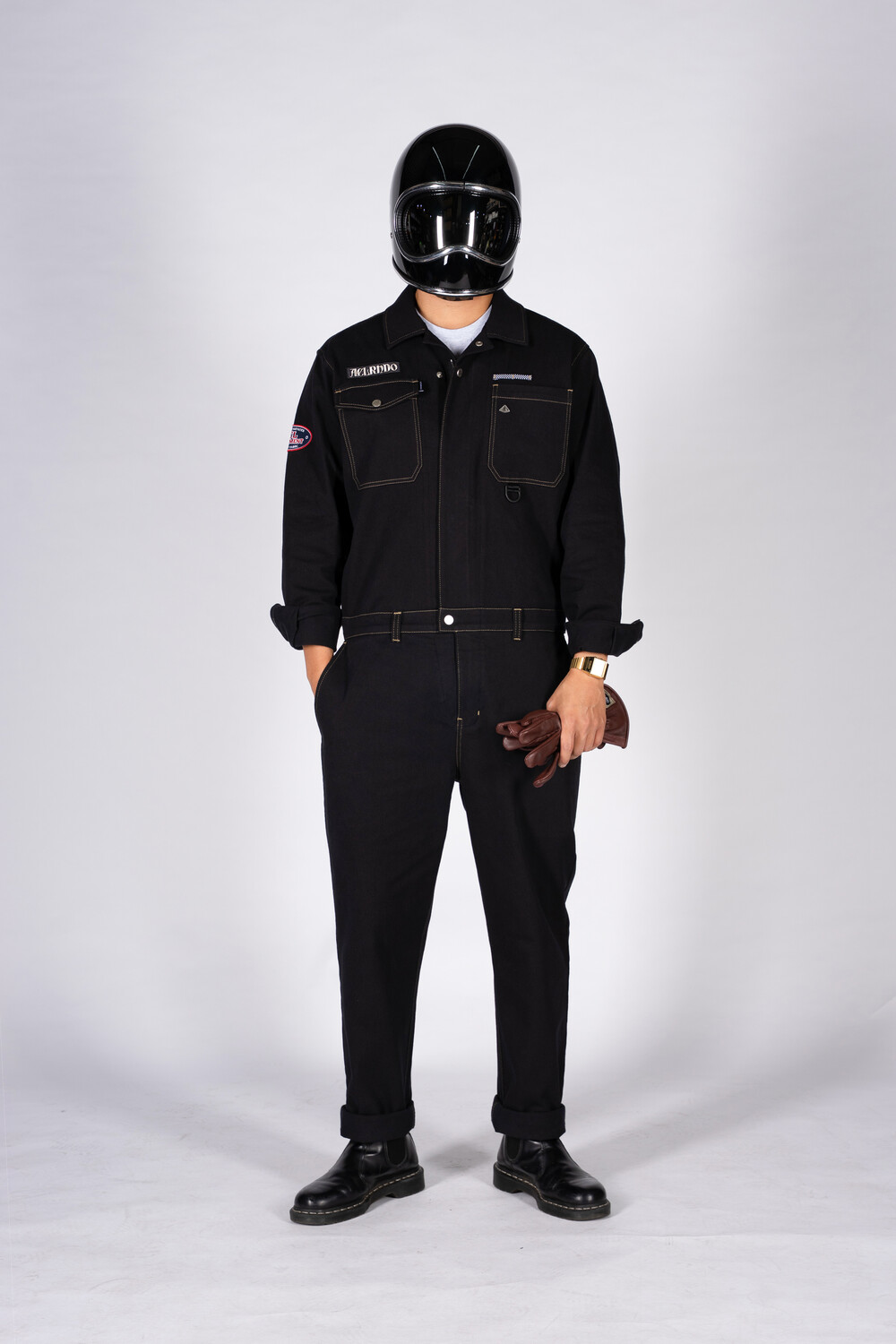 ES10BK Vintage 15oz elastane Jumpsuit black