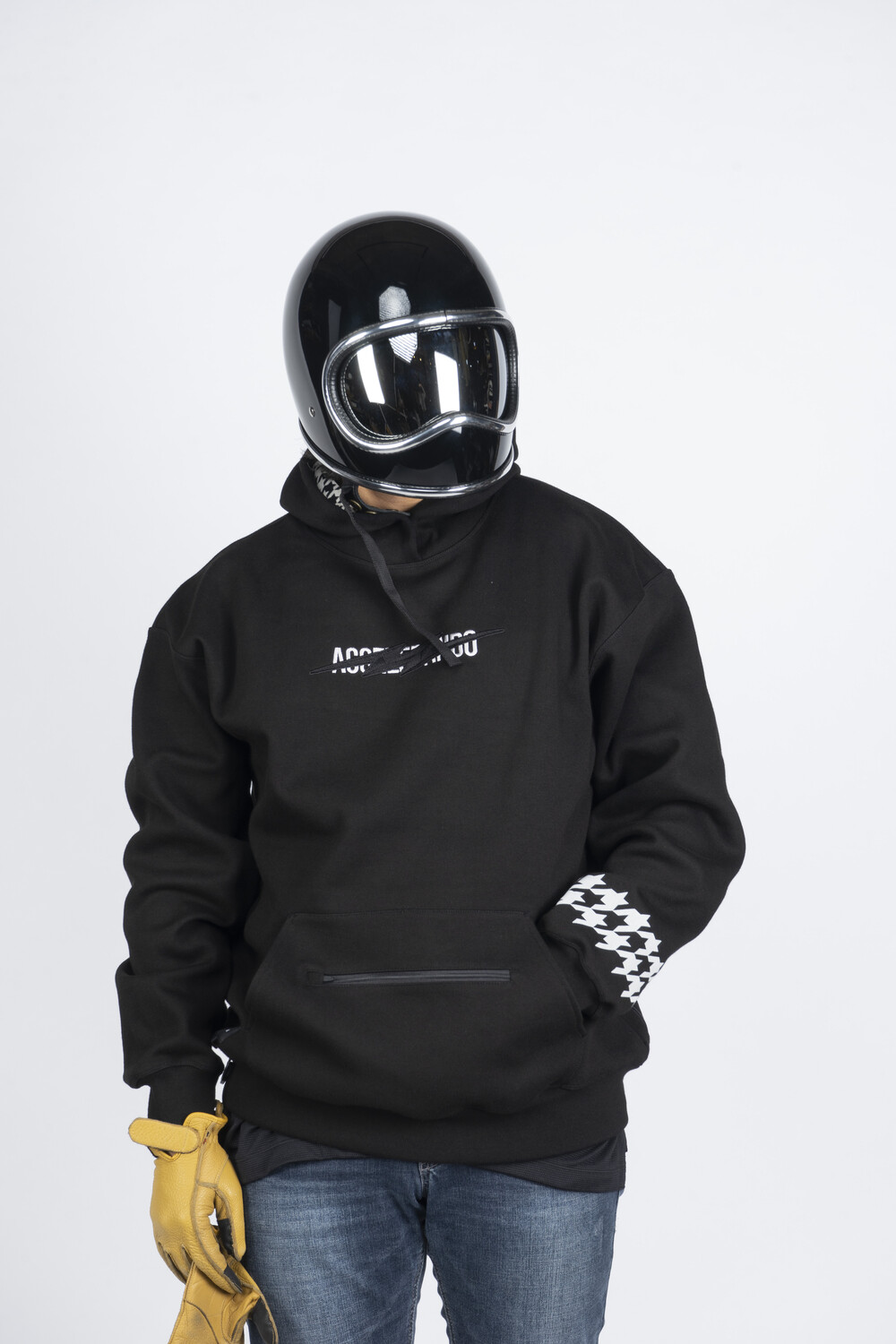 (FB07WH) HOUNDTOOTH windproof hoodie black-white