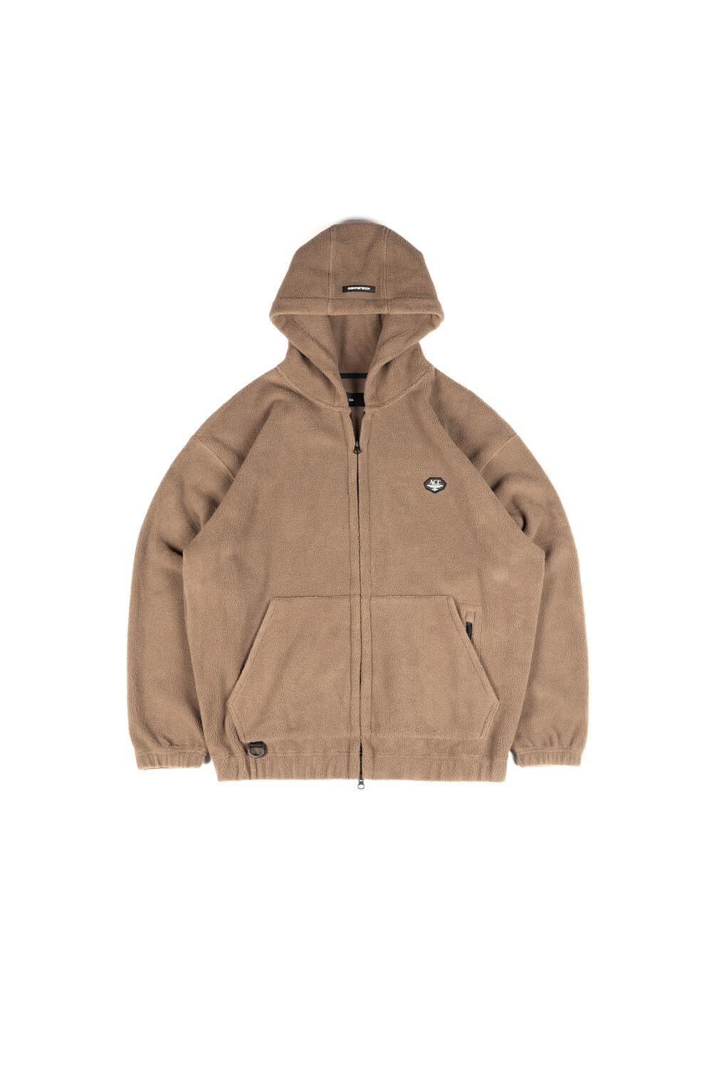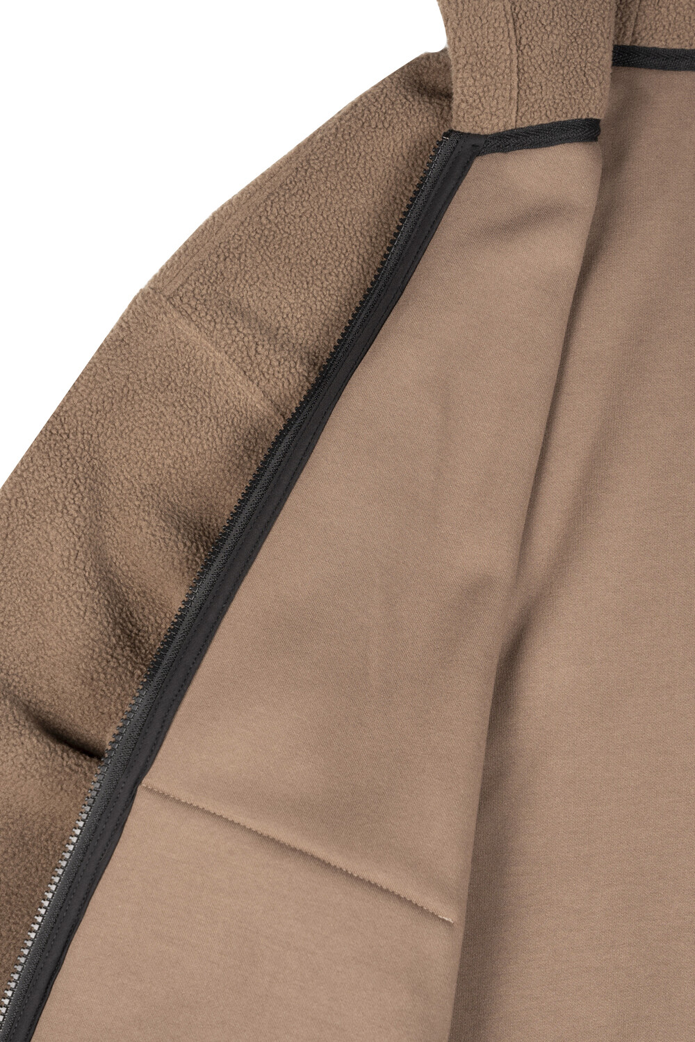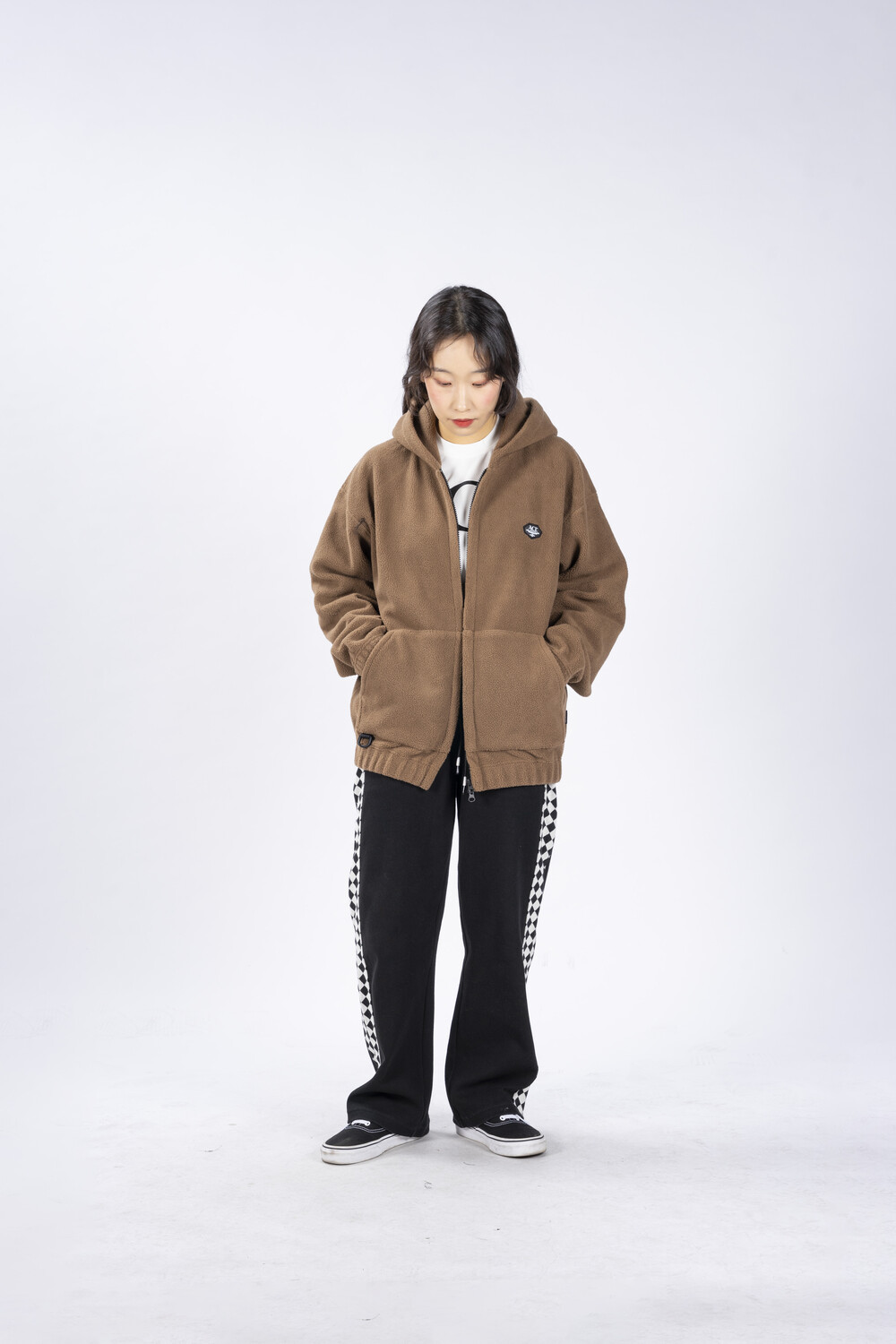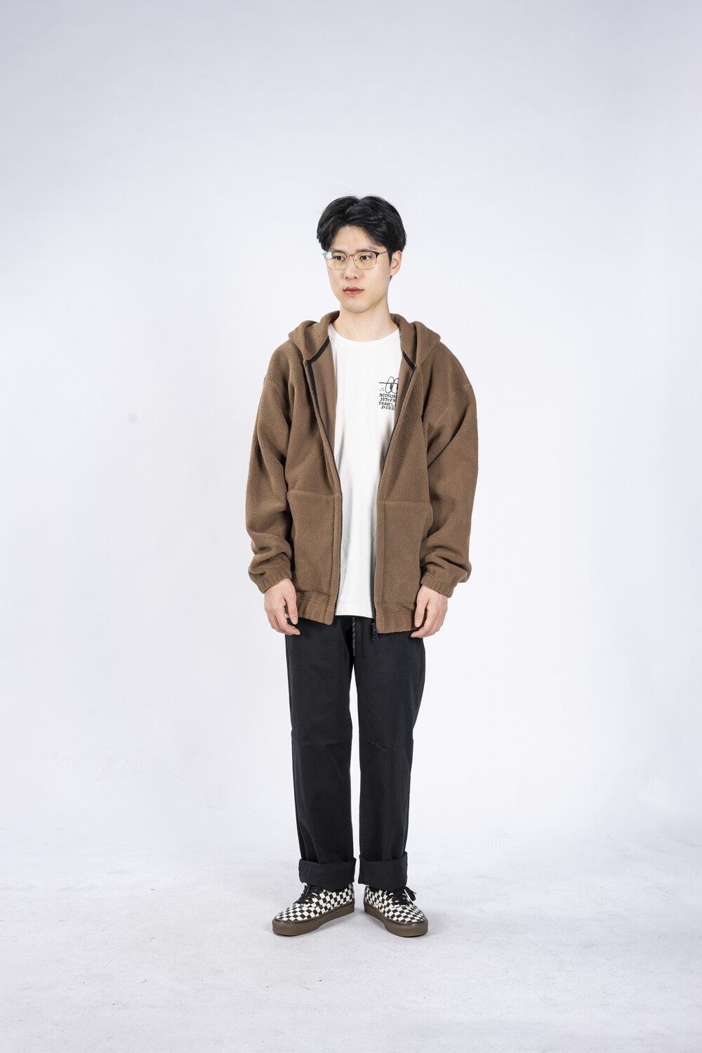 폴라플리스와 유사한 터치의 피치 가공을 거친 폰테 소재의 집업 후디로 매끈한 안쪽면과 정전기 방지, 적은 통풍성과 보온 성능을 제공하는 높은 밀도가 특징입니다.