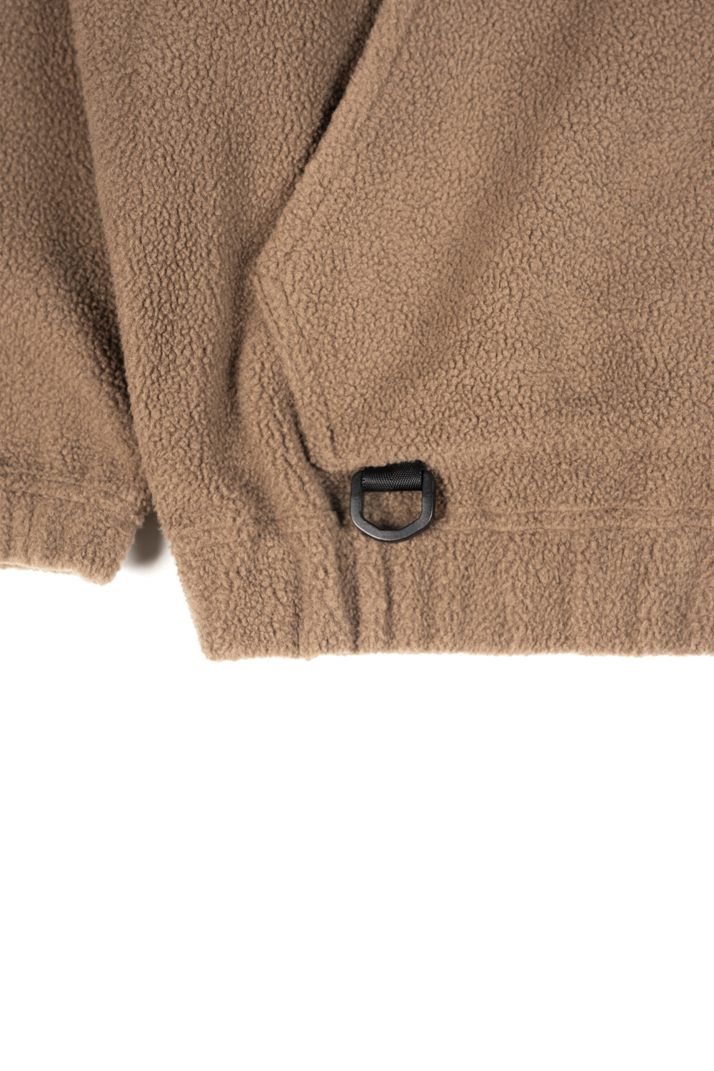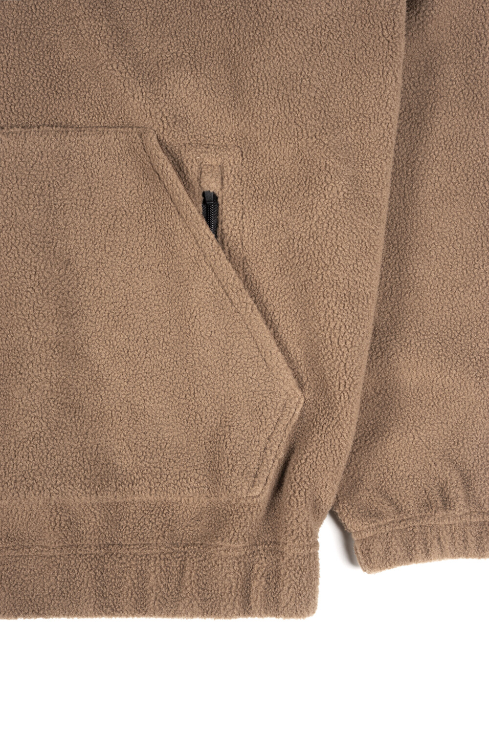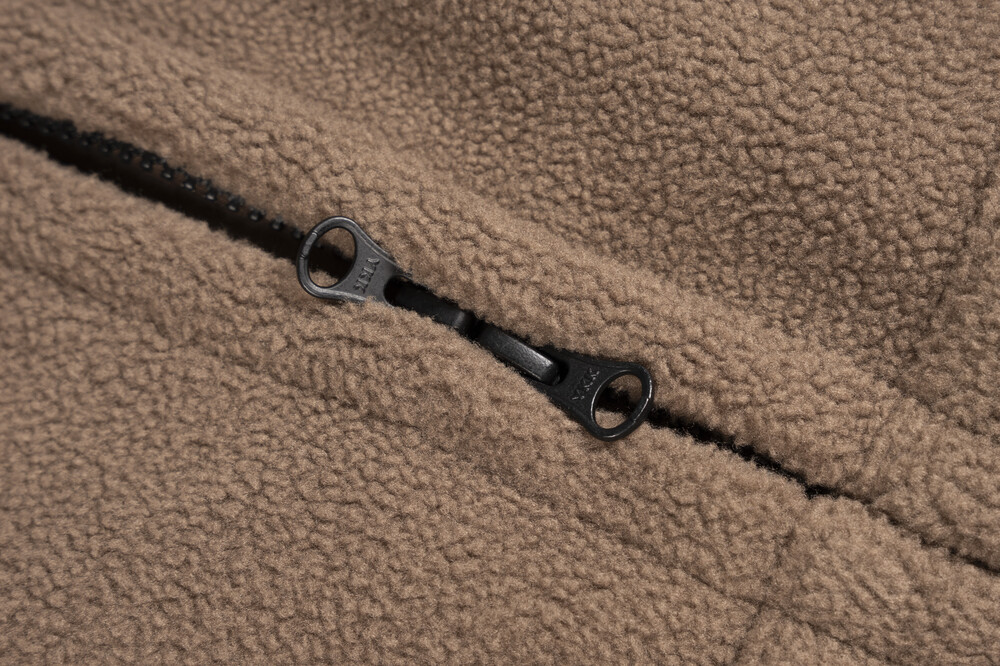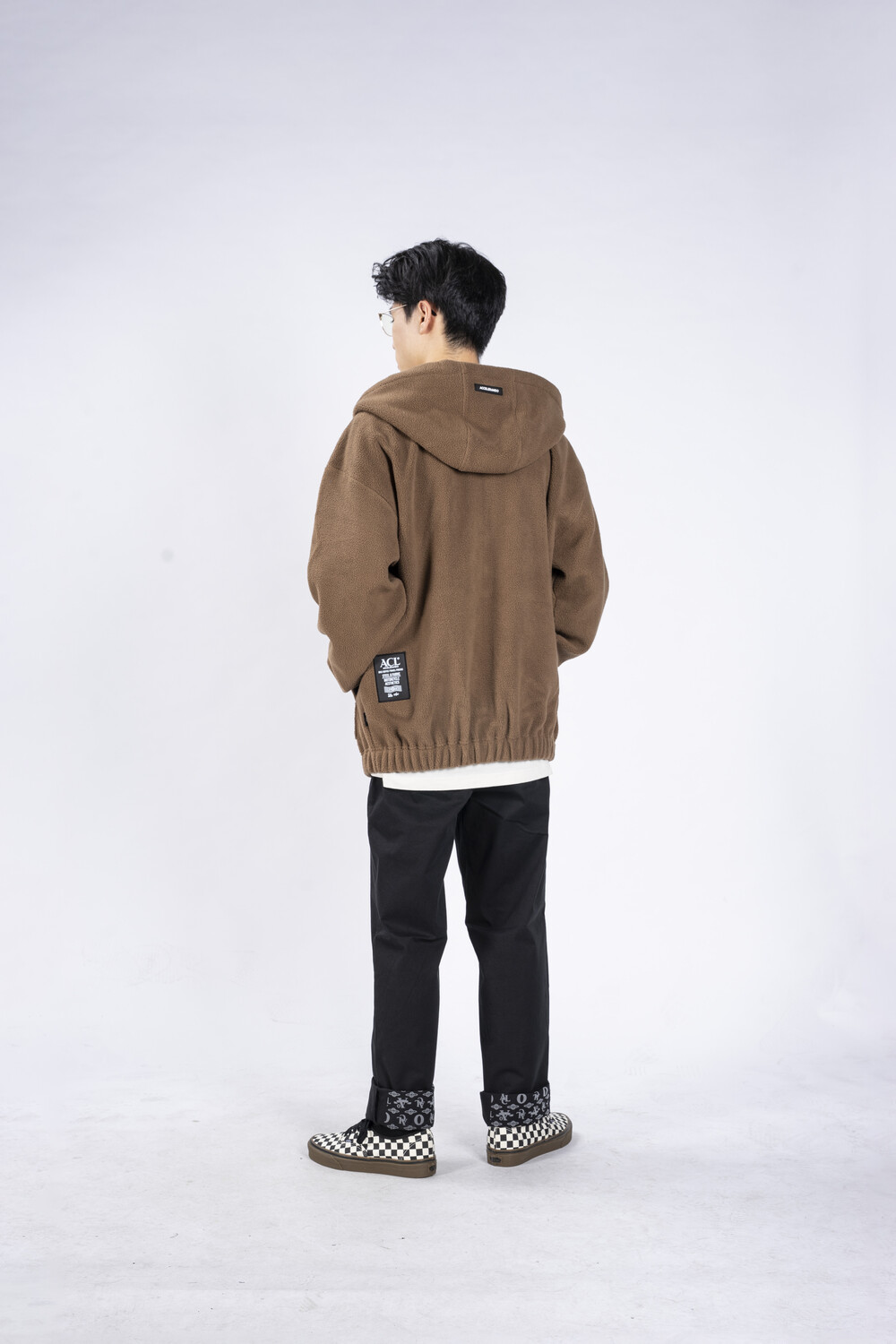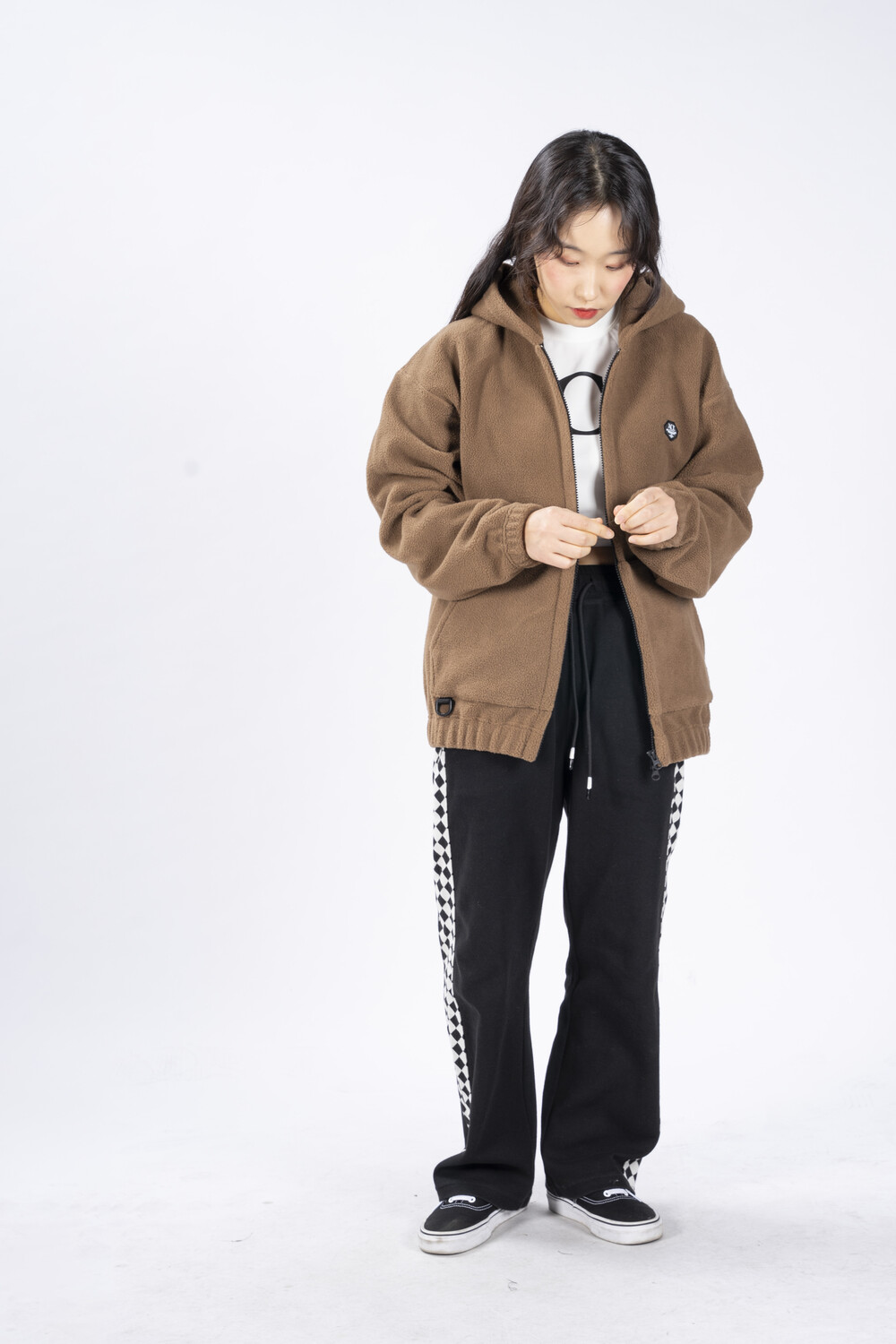 폴라플리스와 유사한 터치의 피치 가공을 거친 폰테 소재의 집업 후디로 매끈한 안쪽면과 정전기 방지, 적은 통풍성과 보온 성능을 제공하는 높은 밀도가 특징입니다.
