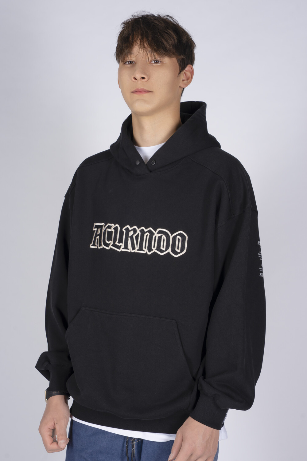 (FB13BK) EMB bio washed hoodie black