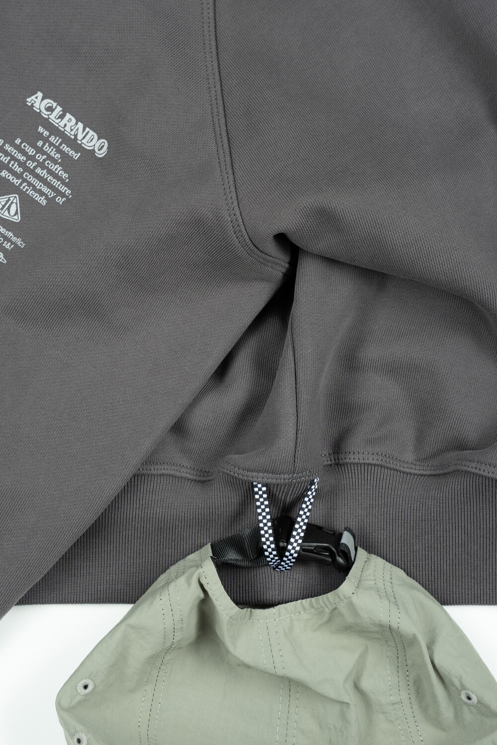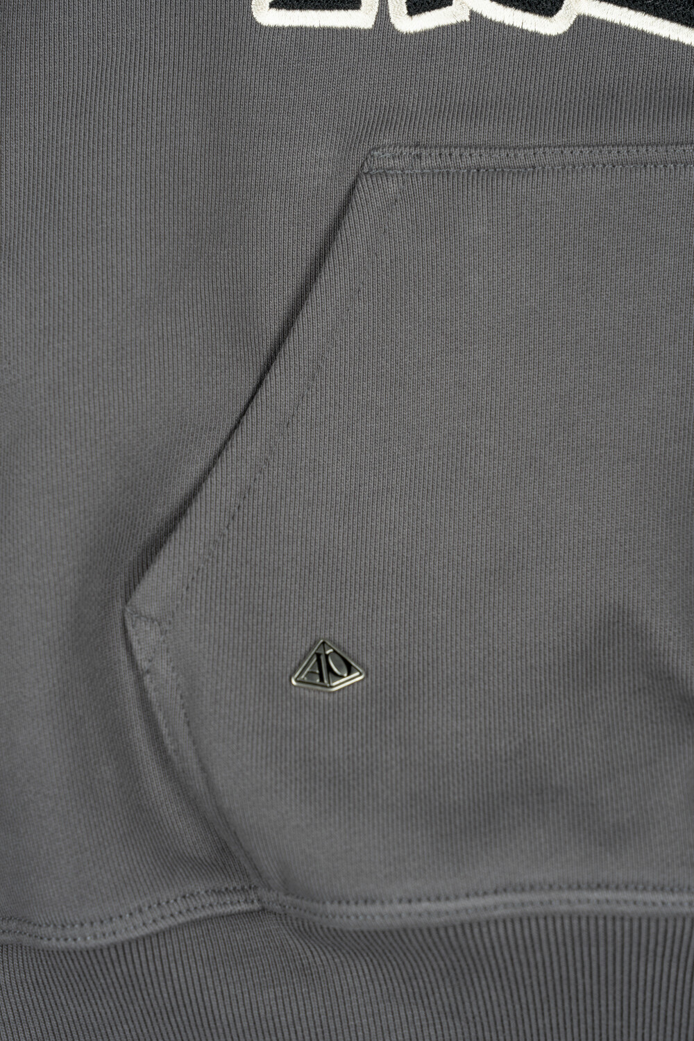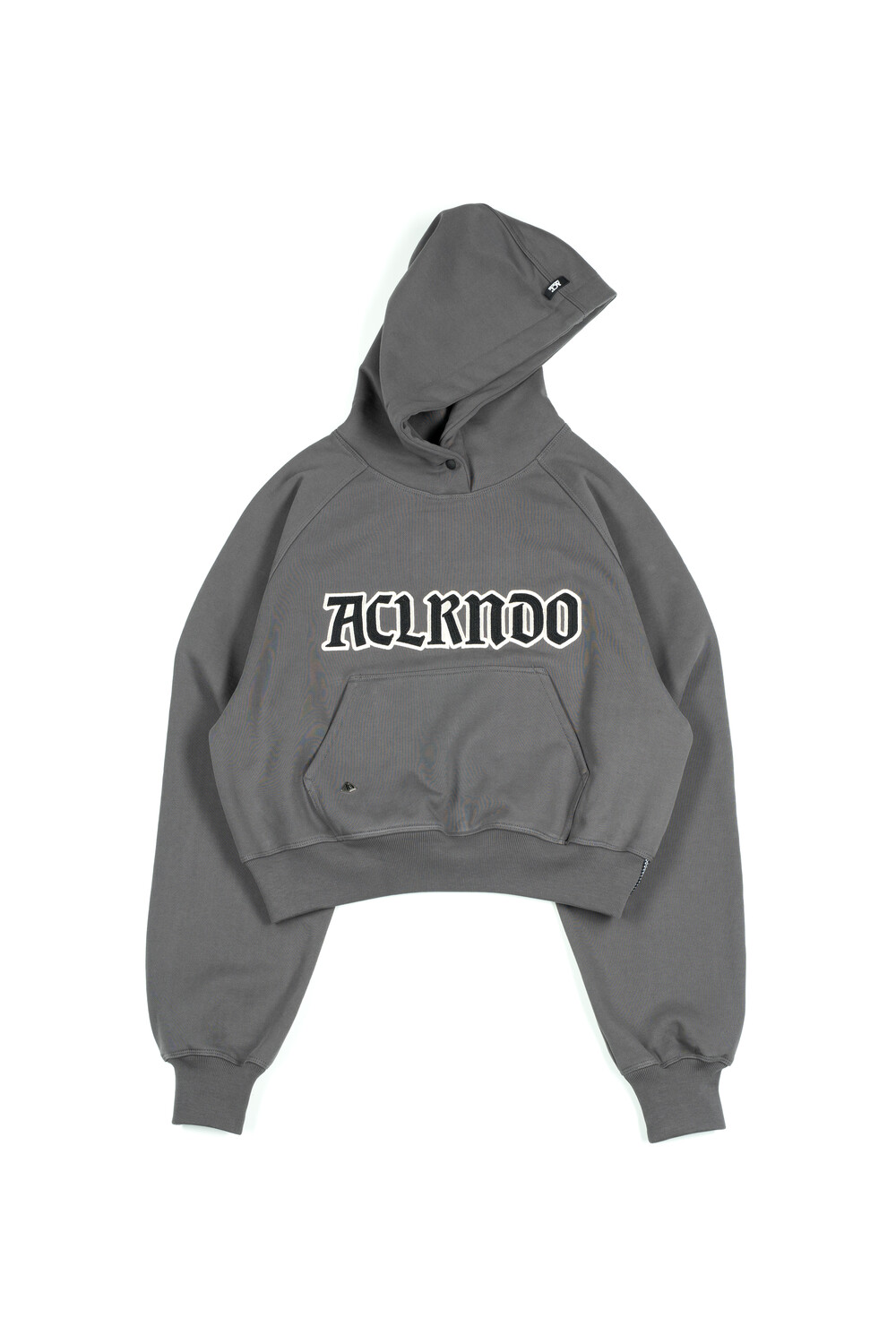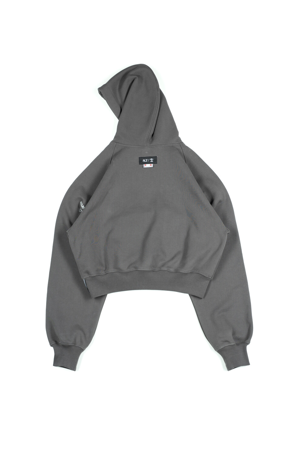 (FB13CGY) EMB bio washed crop hoodie grey women