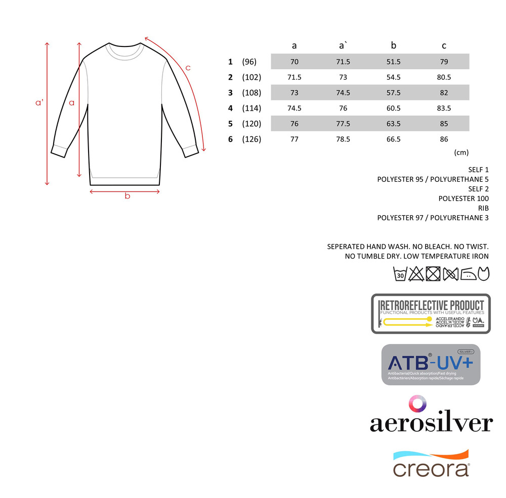 - 가슴, 소매, 등의 신축성 실리콘 재귀반사(retro-reflection) 나염 적용으로 야간 가시성 확보