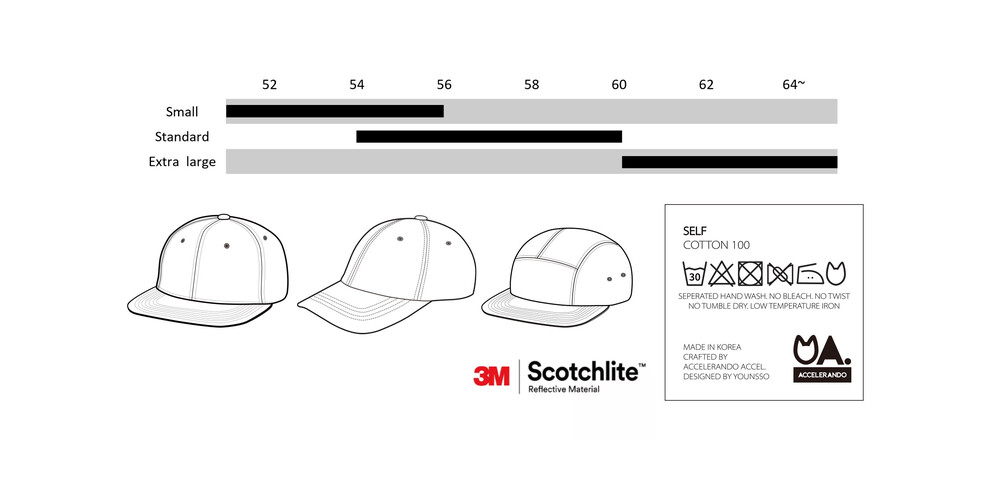 BUCKLE-BACK AND CAM SYSTEM 스트랩 길이 조절의 잠금장치로 어떠한 상황에서도 모자의 일정한 사이즈를 유지시켜주며 허리나 가방등에 걸어 보관시 스트랩풀림에 의한 분실을 방지합니다.